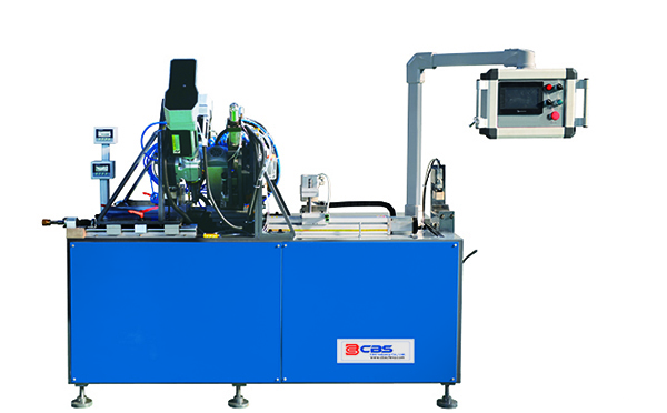该机具有送料、双面钻孔、双面攻丝、切割、工件顶出等多种加工方式。钻孔采用主轴电机,攻丝采用伺服攻丝系统,实现快速精密加工。该机适用于10~35mm高度的夹板生产。工作循环全自动,每件生产时间仅4~6秒。